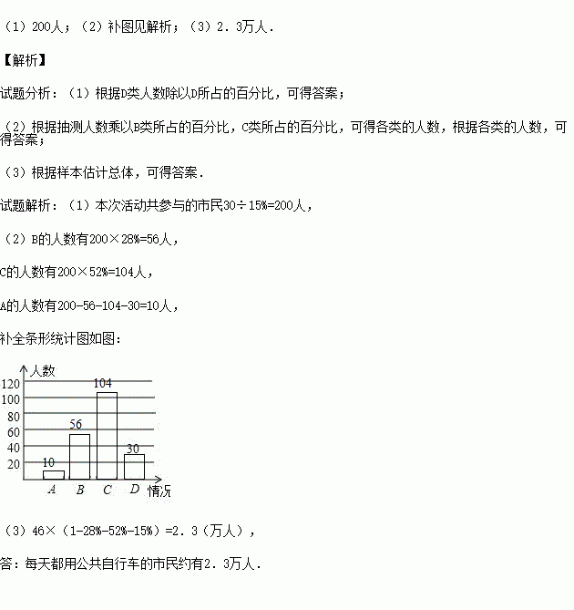 £¨3£©¸ù¾Ýͳ¼Æ½á¹û£¬Èô¸ÃÇøÓÐ46ÍòÊÐÃñ£¬Çë¹ÀËãÿÌì¶¼Óù«¹²×ÔÐгµµÄÊÐÃñÔ¼ÓжàÉÙÈË£¿