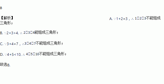 下列长度的三条线段首尾相连能组成三角形的是( )