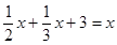 不讲究说话艺术常引起误会。相传一个人不太会说话,一次他设宴请客,眼看快到中午了,还有几个人没有来,就自言自语地说:“怎么该来的还不来呢?”在座的客人一听,想:难道我们是不该来的?于是有一半人走了,他一看很着急,又说:“嗨,不该走的倒走了!”剩下的人一听,是我们该走啊!于是剩下的又有三分之二的人离开了,他着急的直拍大腿,连说:“我说的不是他们。”结果仅剩下的3个人也都告辞走了。聪明的你知道开始来了多少客人吗?如果设开始来了x位客人,那么所列方程为_ ___(只需列出方程,不解答)。