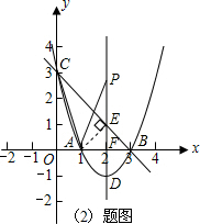 (2)根据点B、C的坐标利用勾股定理求出BC的长度,然后过点A作AE⊥BC于点E,设对称轴与x轴相交于点F,然后求出AE、AF的长度以及CE的长度,可以证明△AEC与△AFP相似,然后根据相似三角形对应边成比例列式求出PF的长度,再分点P在x轴的上方与下方两种情况写出点P的坐标;