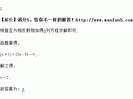 当x=_______时,代数式x+1与3x﹣9的值互为相反数.