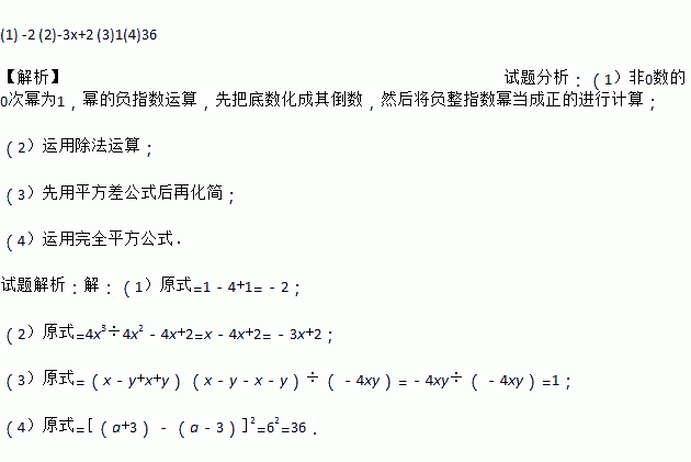+(-1)4 (2).4x3 ÷(-2x)2—(2x2-x)÷(