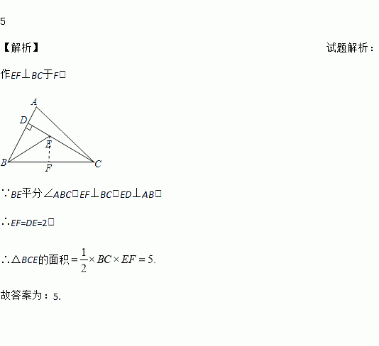 如图,已知在△ABC中,CD是AB边上的高,BE平分∠ABC,交CD于点E,BC=5,DE=2,则△BCE的面积等于_____.