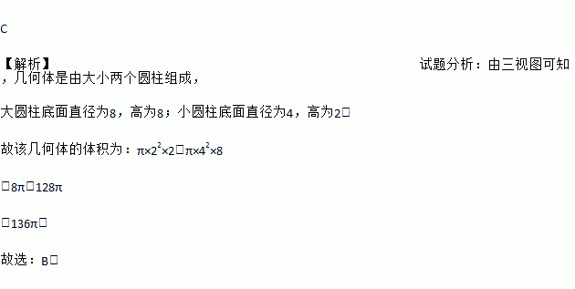 如图,是某几何体的三视图,根据图中所标的数据求得该几何体的体积为