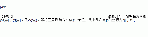 如图,三角形OAB的顶点A的坐标为(3,5),点B的坐标为(4,0),把三角形OAB沿x轴向右平移得到三角形CDE,如果CB=1,那么点D的坐标为________________