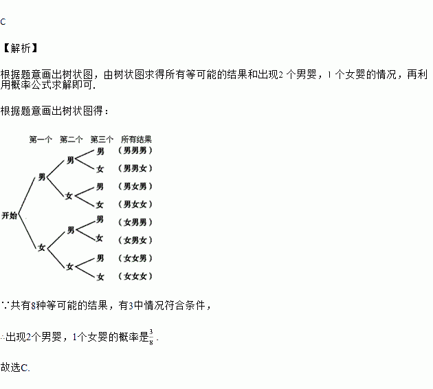 一家医院某天出生了个婴儿,假设生男生女的机会相同,那么这个婴儿中,出现个男婴,个女婴的概率是( )