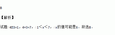 若三角形的三边长分别为3,4,x,则x的值可能是( )