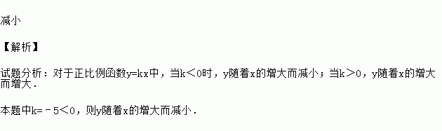 正比例函数y=﹣5x中,y随着x的增大而 .
