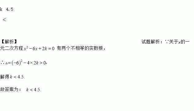 关于x的一元二次方程x2?6x2k=0有两个不相等的实数根,则实数k的取值范围是_______.