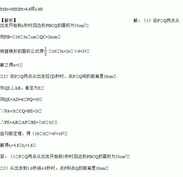(1)P、Q两点从出发开始到几秒?四边形PBCQ的面积为33cm2;