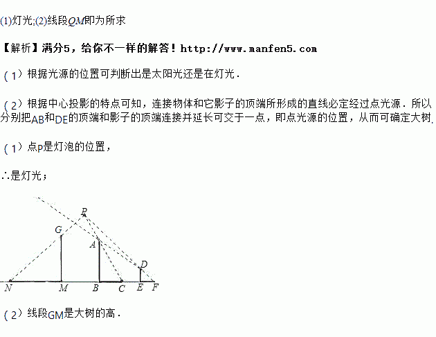 (1)图中的影子是在太阳光下形成的还是在灯光下形成的?