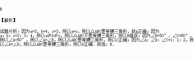 A.a=3,b=3,c=4 B.a︰b︰c=2︰3︰4
