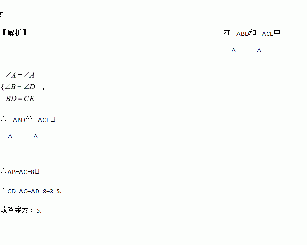 如图,已知BD=CE,∠B=∠C,若AB=8,AD=3,则DC=__.