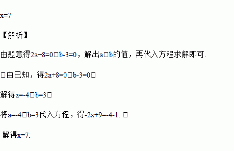 已知a,b满足,解关于x的方程(a+2)x+b2=a-1.