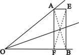 如图,已知∠AOB,OA=OB,点E在OB边上,四边形AEBF是矩形.请你只用无刻度的直尺在图中画出∠AOB的平分线(请保留画图痕迹).(8分)