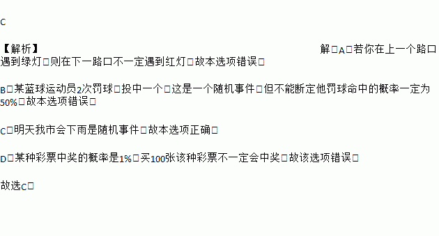 C. “明天我市会下雨”是随机事件