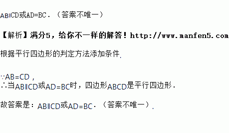 如图,已知四边形ABCD,对角线AC,BD交于点O,AB=CD,请添加一个条件_____(只添一个即可),使四边形ABCD是平行四边形.