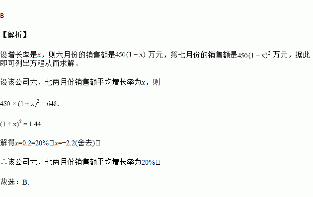 万元.则该公司六、七两月份销售额平均增长率为( )![]()
