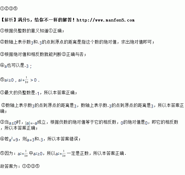 ①最大的负整数是-1;②数轴上表示数3和-3的点到原点的距离相等;