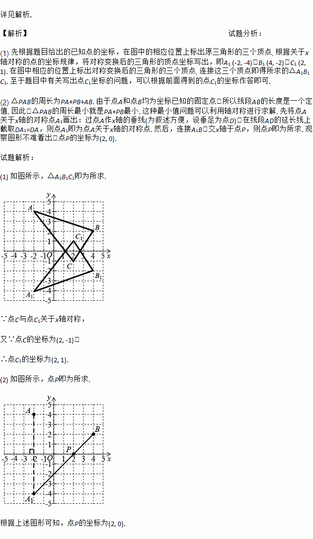 (2)P为x轴上一点,请在图中画出使△PAB的周长最小时的点P并直接写出此时点P的坐标(保留作图痕迹).