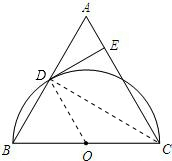 已知:如图,在△ABC中,AB=AC,以BC为直径的半圆O与边AB相交于点D,切线DE⊥AC,垂足为点E.