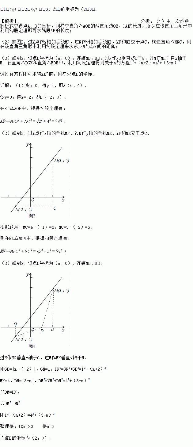 (3)在(2)的基础上,若有一点D在x轴上运动,当满足DM=DN时,请求出此时点D的坐标.