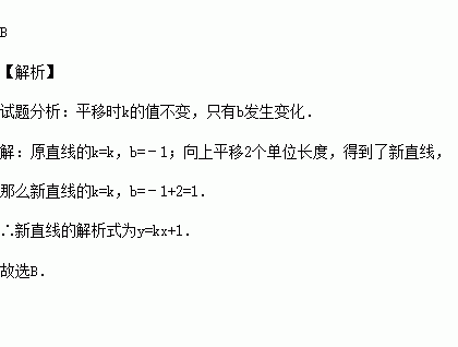 将直线y=kx﹣1向上平移2个单位长度,可得直线的解析式为( )