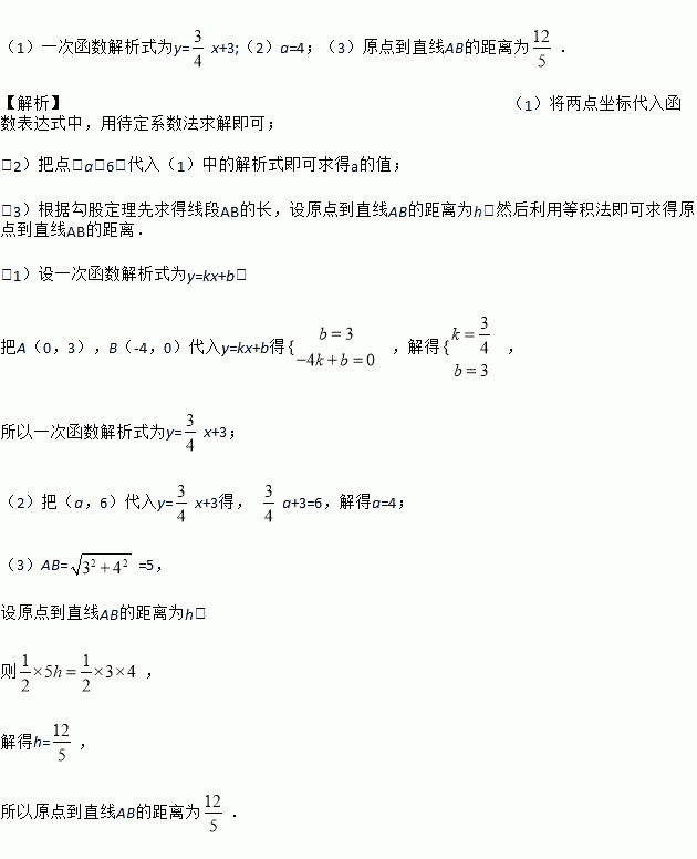已知一次函数的图象经过点A(0,3),B(-4,0).
