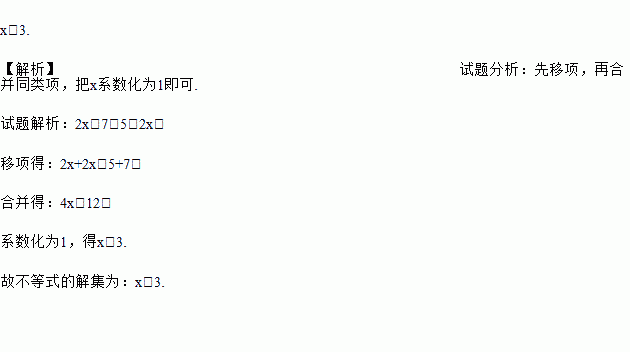 解不等式: 2x-7<5-2x;