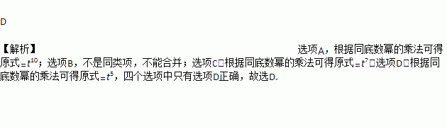 A. t5·t5 = 2t5 B. t4+t2 = t 6 C. t3·t4 = t12 D. t2·t3 = t5