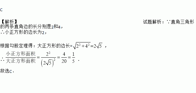 “赵爽弦图”是四个全等的直角三角形与中间一个小正方形拼成的大正方形,如图,其直角三角形的两条直角边的长分别是2和4,则小正方形与大正方形的面积比是( )
