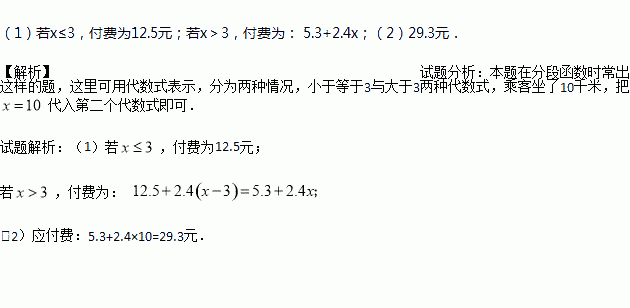 某市出租车的收费标准是:3千米内(含3千米)起步价为12.5元,超过3千米的部分每千米收费2.4元,某乘客坐出租车X千米(x>3)