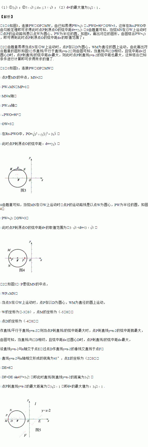 在平面直角坐标系xOy中的某圆上,有弦MN,取MN的中点P,我们规定:点P到某点(直线)的距离叫做“弦中距”,用符号“