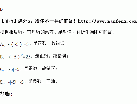 A. -(-5) B. (-5)2 C. ︱-5︱ D. -︱-5︱