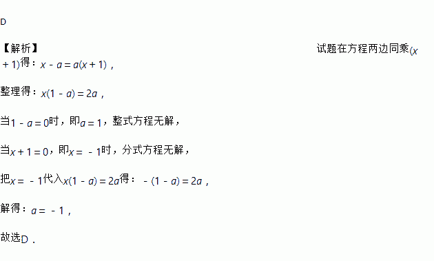 若分式方程无解,则a的值为( )