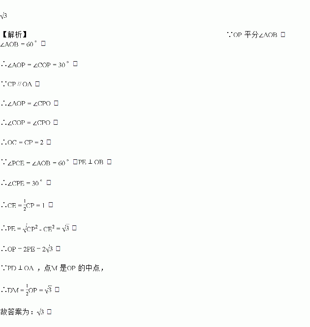 如图,已知平分,,,,于点,于点.如果点是的中点,则的长是________.