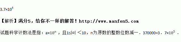 中国的领水面积约为370 000 km2,将数370 000用科学计数法表示为:__________。