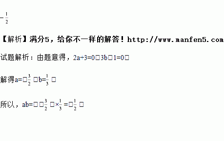 若|2a+3|+(3b﹣1)2=0,则ab=_____.