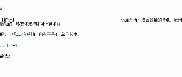 A为数轴上表示-1的点,将点A在数轴上向右平移4个单位长度到点B,则点B表示的有理数为( )