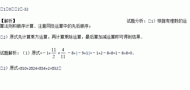 (2)﹣10+8÷(﹣2)2﹣(﹣2)3×(﹣3)