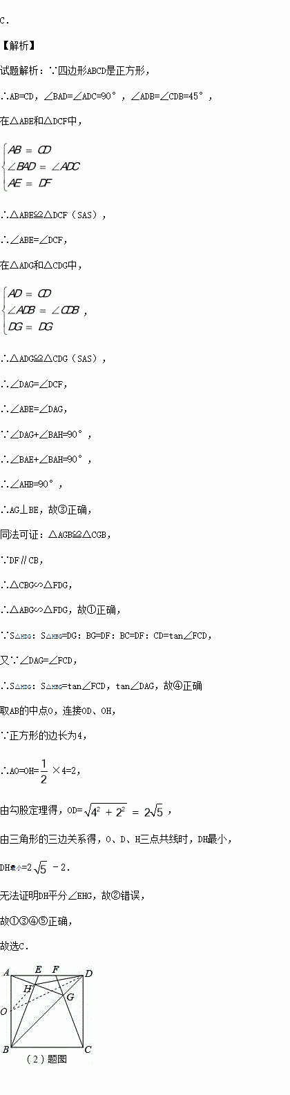 ①△ABG∽△FDG;②HD平分∠EHG;③AG⊥BE;④S△HDG:S△HBG=tan∠DAG;⑤线段DH的最小值是2-2