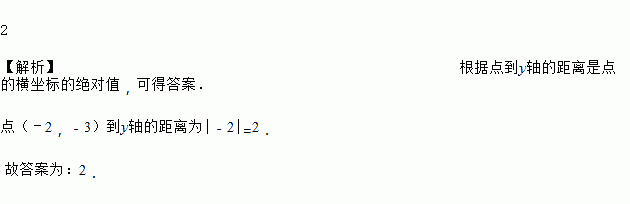 在平面直角坐标系中,点(-2,-3)到y轴的距离为________.