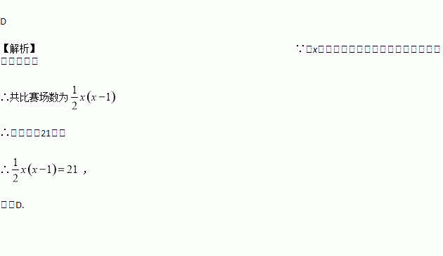 篮球比赛中,要求每两队之间都进行一场比赛,总共比赛21场,问有多少个队参加比赛? 设有x个队参加比赛,则可列方程为( )
