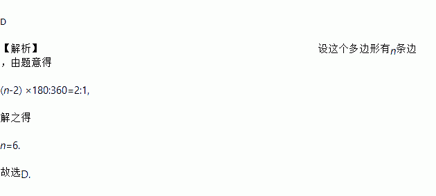 一个多边形的内角和与外角和的度数之比为2∶1,则这个多边形的边数为( )