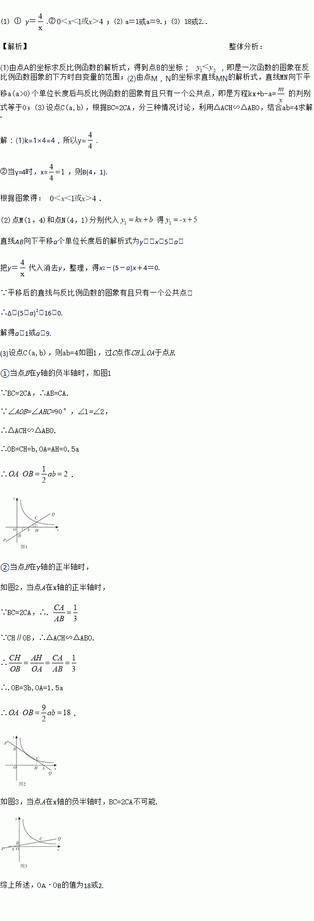 (2) 若将直线MN向下平移a(a>0)个单位长度后与反比例函数的图象有且只有一个公共点,求a的值;