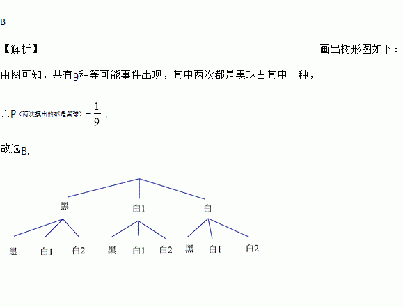 一个布袋内只装有1个黑球和2个白球,这些球除颜色外其余都相同,随机摸出一个球后放回并搅匀,再随机摸出一个球,则两次摸出的球都是黑球的概率是( )