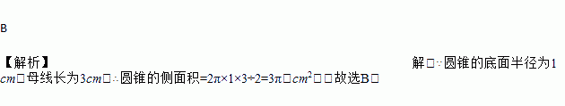 已知圆锥的底面半径为1 cm,母线长为3 cm,则圆锥的侧面积是( )