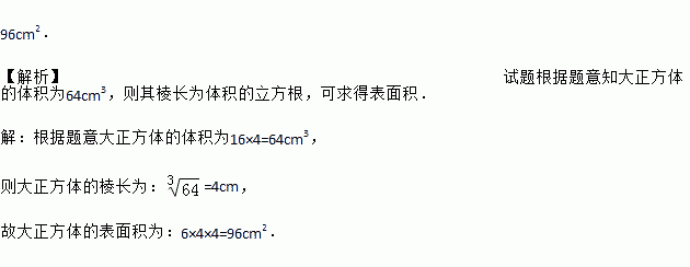 一个正方体的体积是16cm3,另一正方体的体积是这个正方体体积的4倍,求另一个正方体的表面积.