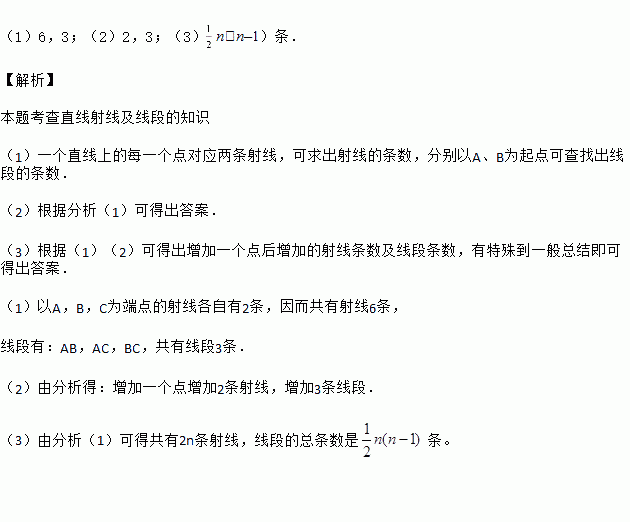 (3)如果在直线l上增加到n个点,则共有多少条射线?多少条线段?