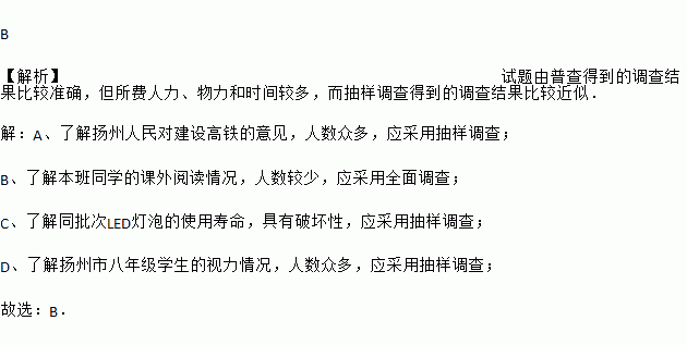 D. 了解扬州市八年级学生的视力情况